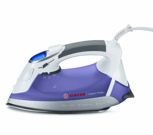 The SINGER Expert Finish Steam Iron is a fully featured 1700 Watt iron that delivers expert garment care. It's lighted precision digital-display temperature control ensures the right heat for the right fabric, every time and alerts you when the desired setting has been reached with the perfect amount of steam for different fabrics. The steam is distributed evenly, ensuring fast, efficient ironing and outstanding performance. Innovative steam features help battle stubborn wrinkles: an improved steam outlet pattern, steam in the vertical or horizontal position, burst of steam button, and variable steam temperature from cool to hot. A brushed stainless steel soleplate offers effortless glide and the iron is self-cleaning with a anti-calc for long product life. A safety feature of 3-way auto shut off allows you to walk away and not worry if you turned off the iron: after 8 minutes the iron will shut-off if left vertical, 30 seconds if left horizontal with no movement, and 30 seconds if it falls to the side. A 360 degree pivoting power cords allows a free range of motion. An open tip simplifies ironing pleats or around buttons. An anti-drip design prevents those annoying leaks when using the iron at low temperatures. The iron weighs less then 3 pounds and has a 94 inch cord. A limited 2 year warranty is included.